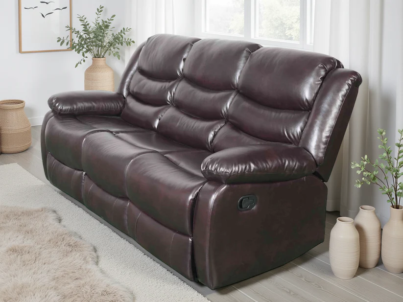 The Conrad Manual Recliner Collection offers ultimate comfort and contemporary style. Upholstered in a Black or Brown bonded leather. Its plush, padded design provides exceptional support, perfect for relaxing after a long day.